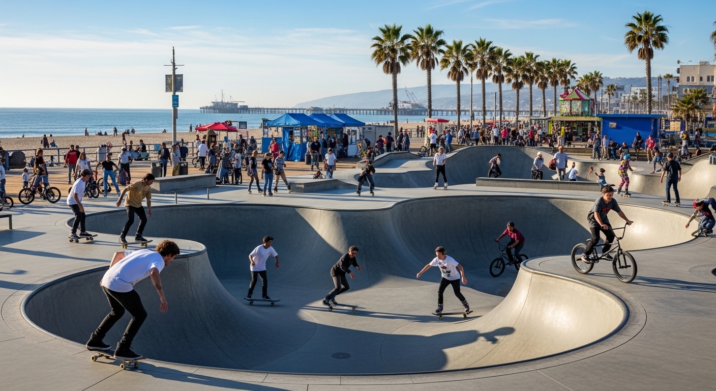 4. LA 베니스비치 스케이트파크 — “현실 세계”로 떨어진 첫 장면의 바람